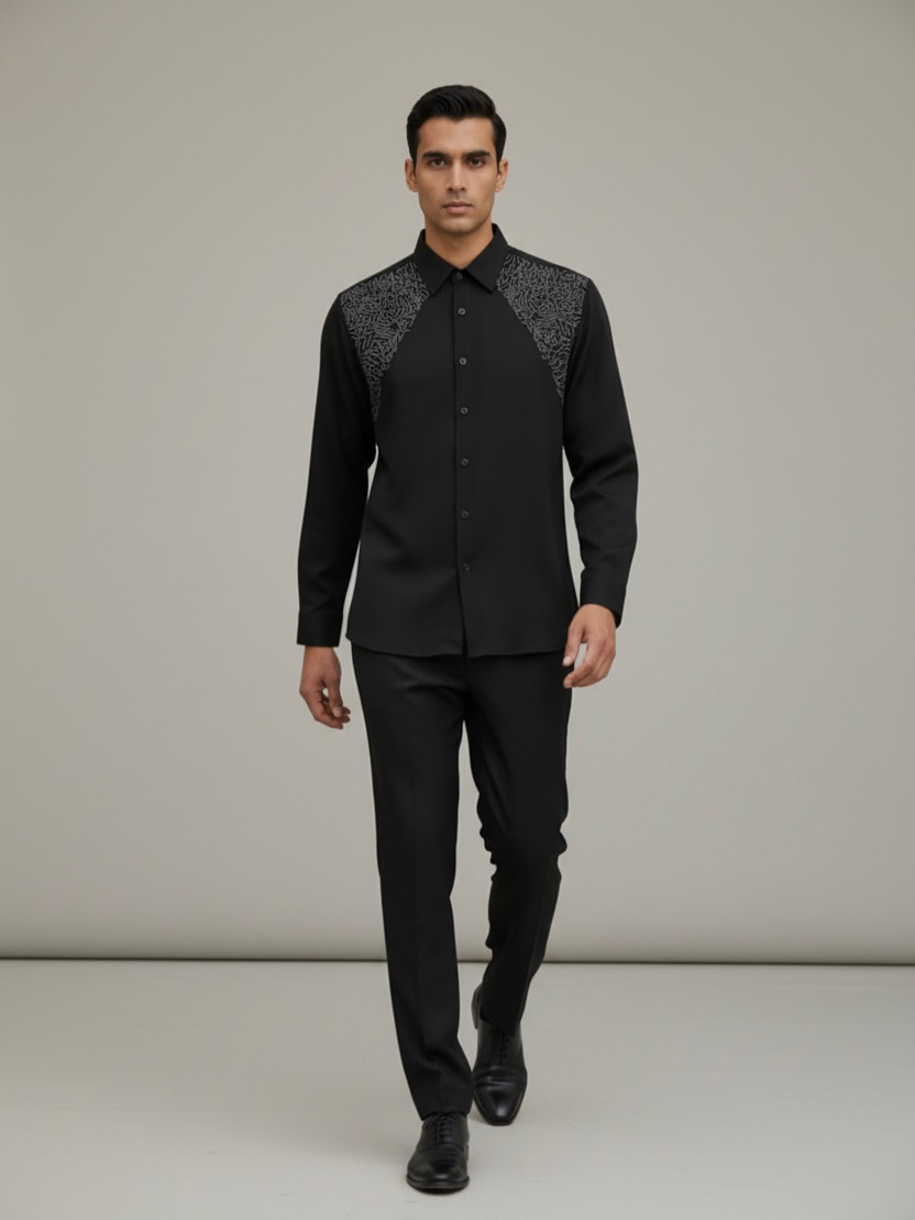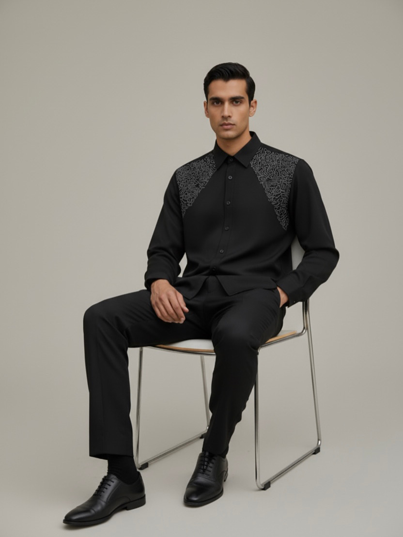 Introducing the stunning Liora Noir Shirt , a perfect fusion of sharp tailoring and contemporary design, it’s the ideal statement piece for a sophisticated and memorable look.