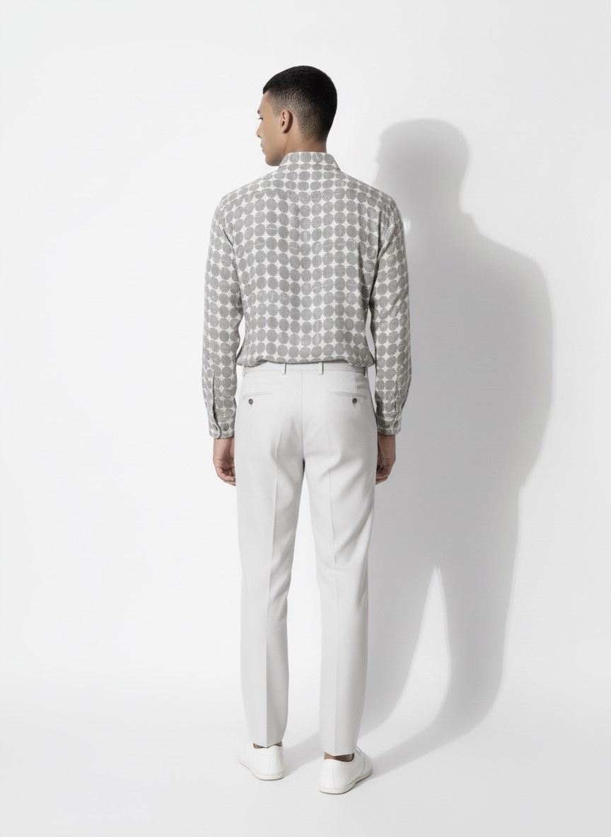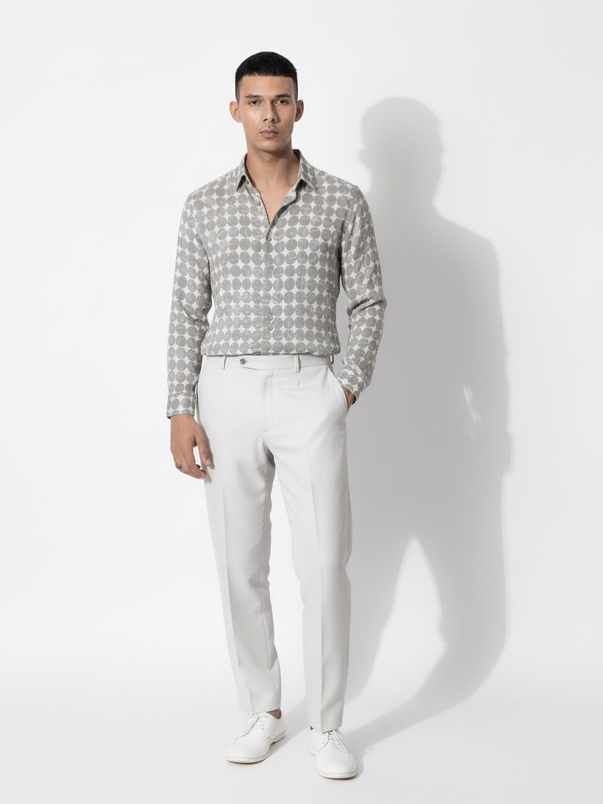 Introducing a contemporary printed shirt featuring a geometric circular pattern, blending comfort with refined style.